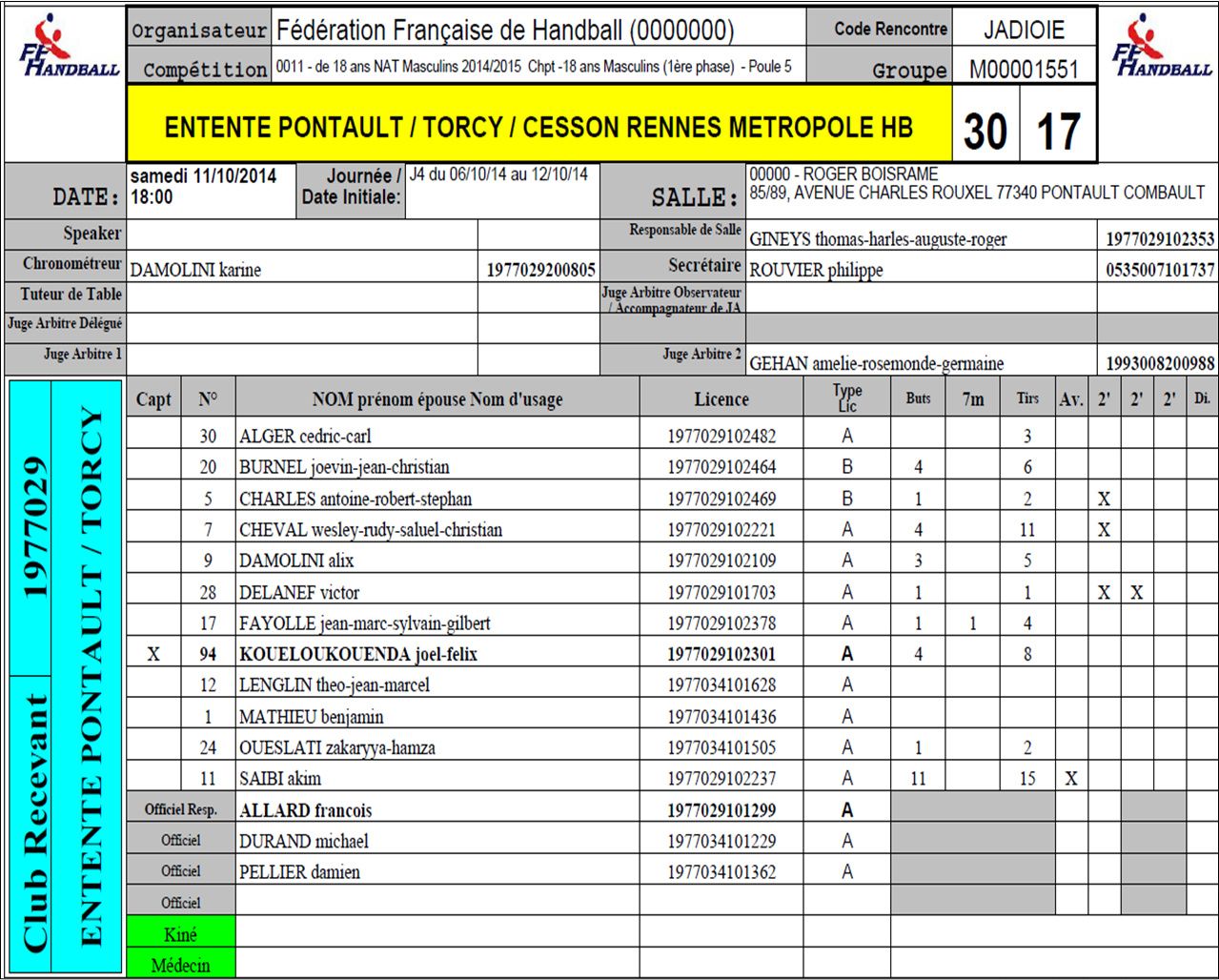 ROUEN METROPOLE HB vs ENTENTE PCT 77 (CdF -18M) 19.10.2014